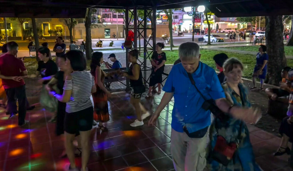 In den Abendstunden ging es auf Nachtfotosafari, da gibt die Stadt wirklich viel her. Auf dem Weg zu einigen Hotspots kamen wir an einem kleinen Park vorbei, wo unter freiem Himmel gerade eine Tanzstunde stattfand. Wir blieben interessiert stehen, bis uns der vermeintliche Tanzlehrer aufforderte, doch mitzutanzen. Ein Cha Cha Cha wurde aufgelegt – nun, nicht eben die schwerste Übung für zwei ganz gut versierte Tanzpaare. Und eine ganz neue Erfahrung für mein Tanzsportgerät so mit Kamera um den Hals und Stativ auf dem Rücken. Wir ernteten ein paar begeisterte Blicke ob unserer Tanzschritte, vor allem vom Tanzlehrer. Als jedoch als nächster Titel Roger Whitaker aufgelegt wurde, mussten wir gaaaanz plötzlich weg, hatten ja eigentlich ein anderes Ziel an diesem Abend.