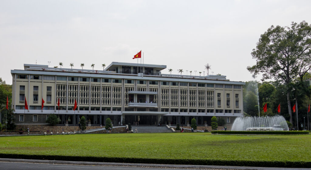 Auf dem Gelände des heutigen Wiedervereinigungspalasts stand früher ein von den französischen Kolonialisten erbautes stattliches Gebäude. Jetzt gibt’s für alle Mitlesenden eine kleine Geschichtskunde. Dieser Wiedervereinigungspalast war bis 1975 der Unabhängigkeitspalast, hier ging es um die Unabhängigkeit vom Kolonialisten Frankreich. Das Bauwerk war Residenz und Arbeitsplatz des Präsidenten von Südvietnam während des Vietnamkrieges . Der Palast war der Ort, an dem das Ende des Vietnamkrieges besiegelt wurde. Dies passierte nach dem Fall von Saigon, was daraufhin in Ho-Chi-Minh-Stadt umbenannt wurde (sowas habe ich doch anderenorts schon mal gehört). Im Sprachgebrauch ist jedoch noch immer Saigon, wobei der innere Stadtkern tatsächlich noch so heißen darf.