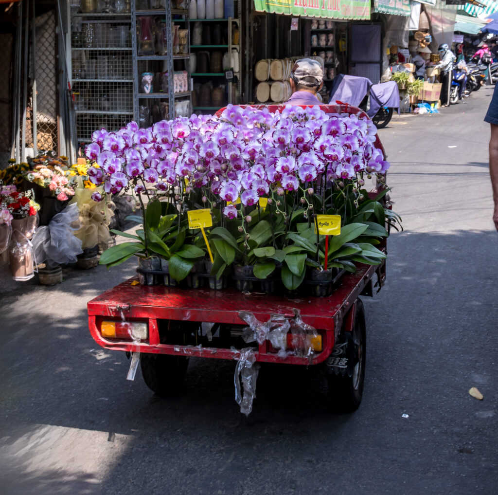 In Chinatown gibt’s ähnlich, wie wir das bereits aus Hongkong kennen, jeweils Straßen mit Ständen und Geschäften nach Produktgruppen sortiert. Wir haben heute unter anderem die Blumenstraße, die Zierfischstraße und die Stoffstraße mitgenommen. Leider waren wir als Reisegruppe unterwegs, sonst wäre ich auf letzterer wieder mal meinem Stoffrausch erlegen (schade eigentlich).