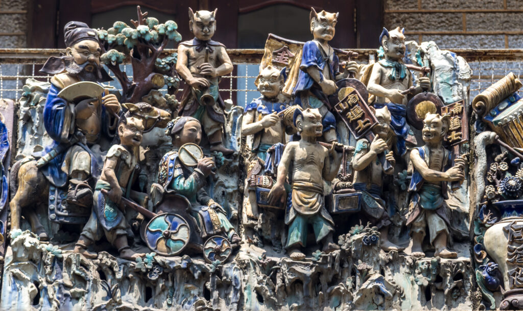 Im chinesischen Tempel spielt der Teufel zu meiner Überraschung eine Rolle. In sehr kleinteiligen Fresken und Reliefs ist die Unterwelt skizziert (oder das, was ich dafür halte).