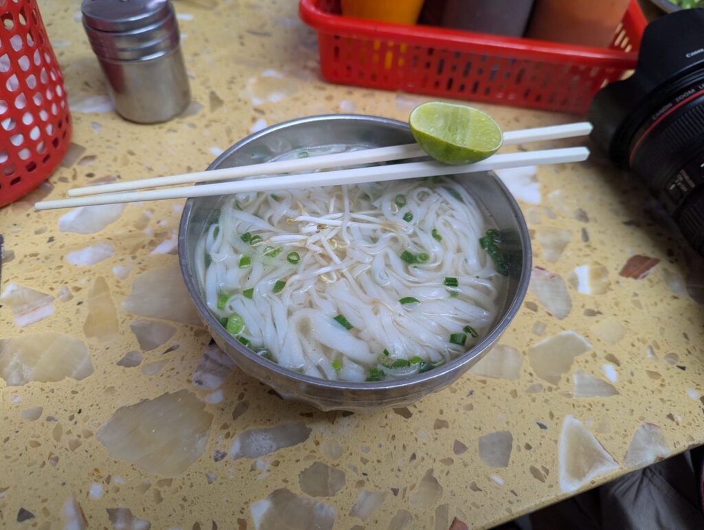 Zweiter authentischer kulinarischer Stopp: zweite Etage einer Garküche. Dass nicht soviele Touristen hier rasten, merkten wir daran, dass der Wunsch nach einer Gabel die Kellnerin an den Rand ihres Englisch-Vokabulars brachte. Der Chef brachte uns dann aber etwas verstohlen doch noch zwei vorbei. Ich war zufrieden mit meiner vegetarischen Reisnudelsuppe.