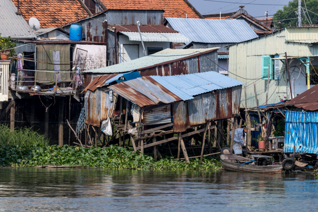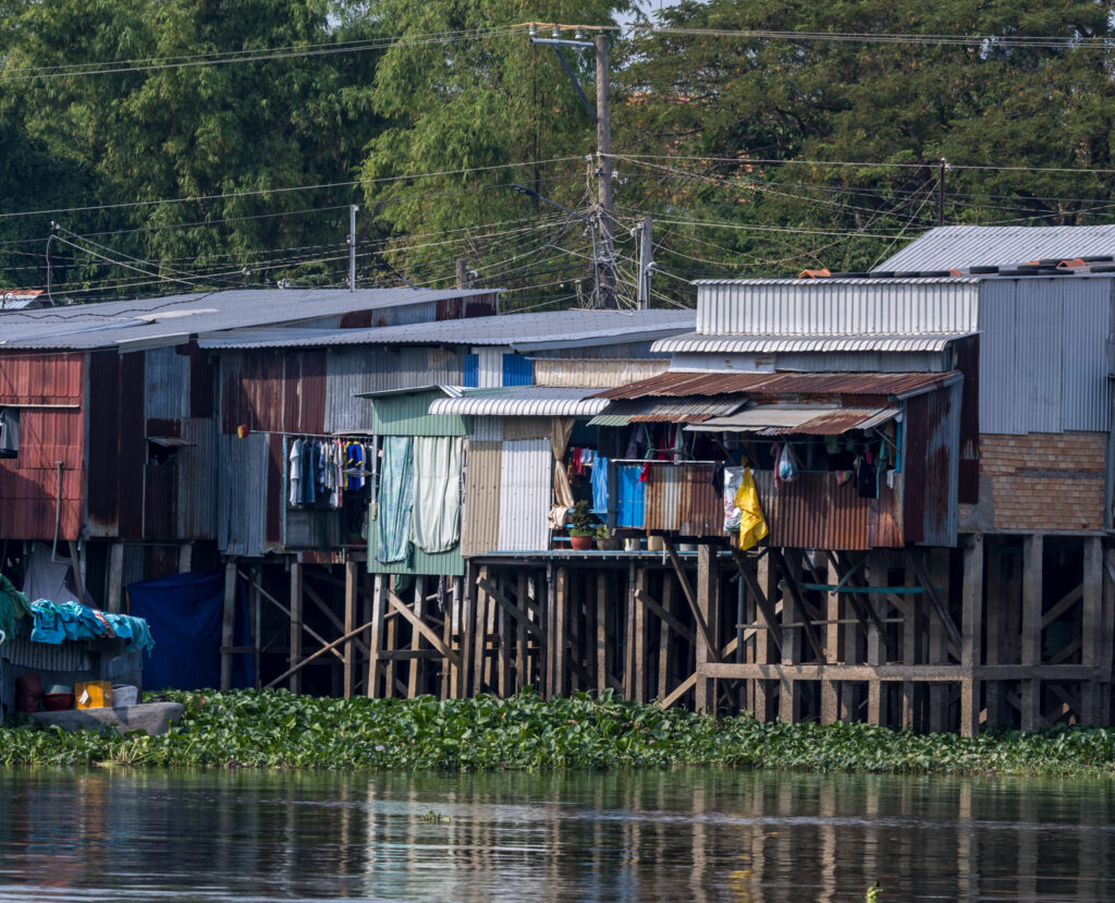 Die Leute am Ufer des Mekongdelta leben sehr einfach und sind teilweise recht arm. Aber wir haben kein Elend gesehen. Jeder versucht, sich mit irgendeiner Tätigkeit über Wasser zu halten. Letzteres im tatsächlichen Sinne, da mindestens einmal im Jahr das Hochwasser kommt und die Stelzenhäuser am Ufer des Mekong an die Grenzen ihrer Tragfähigkeit bringen. Und genau so sehen die Häuser stellenweise auch aus.