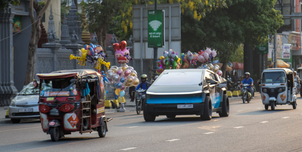 Der Rückweg zum Hotel war uns zu lang und wir buchten über GRAB das traditionelle Taxi in Kambodscha, ein TukTuk. Das ist so eine Art Mopedrikscha: witzig, wendig, luftig und preiswert.