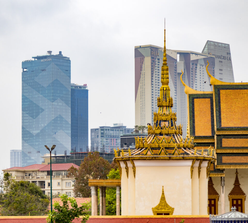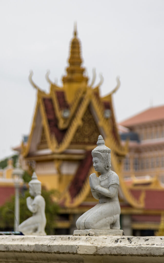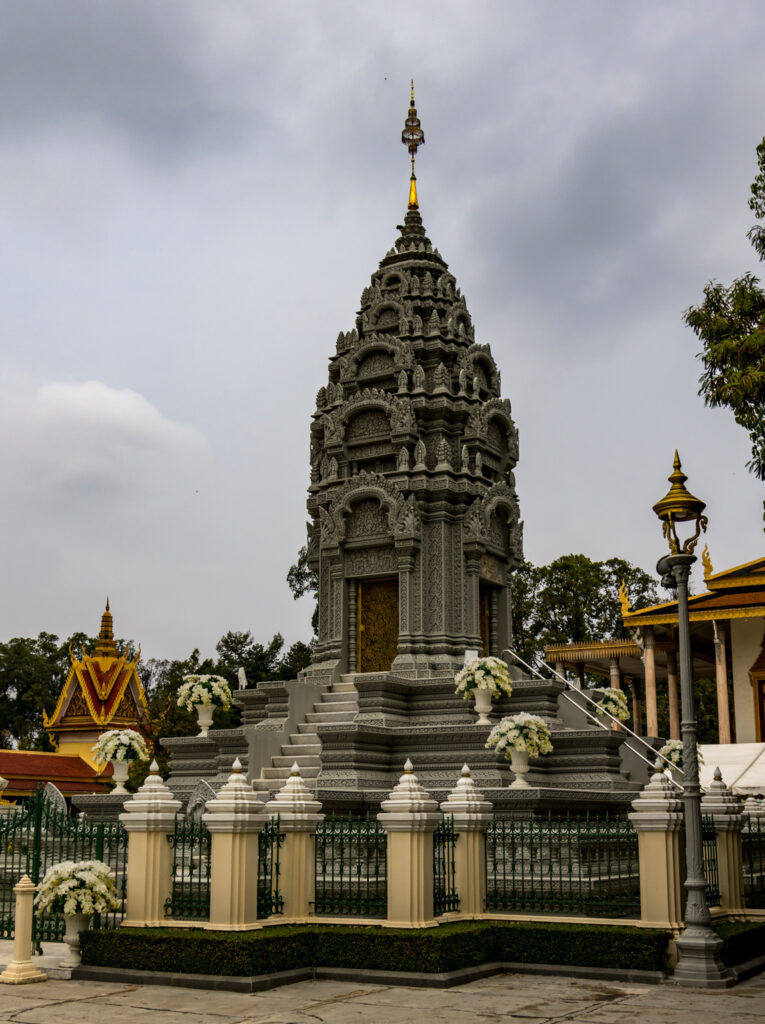 Das Gelände des Königs ist prunkvoll mit vielen Pagoden und Stupas im typischen Khmer-Baustiel gehalten. Gerade die Pagoden unterscheiden sich in der Dachgestaltung sehr deutlich von Vietnam.