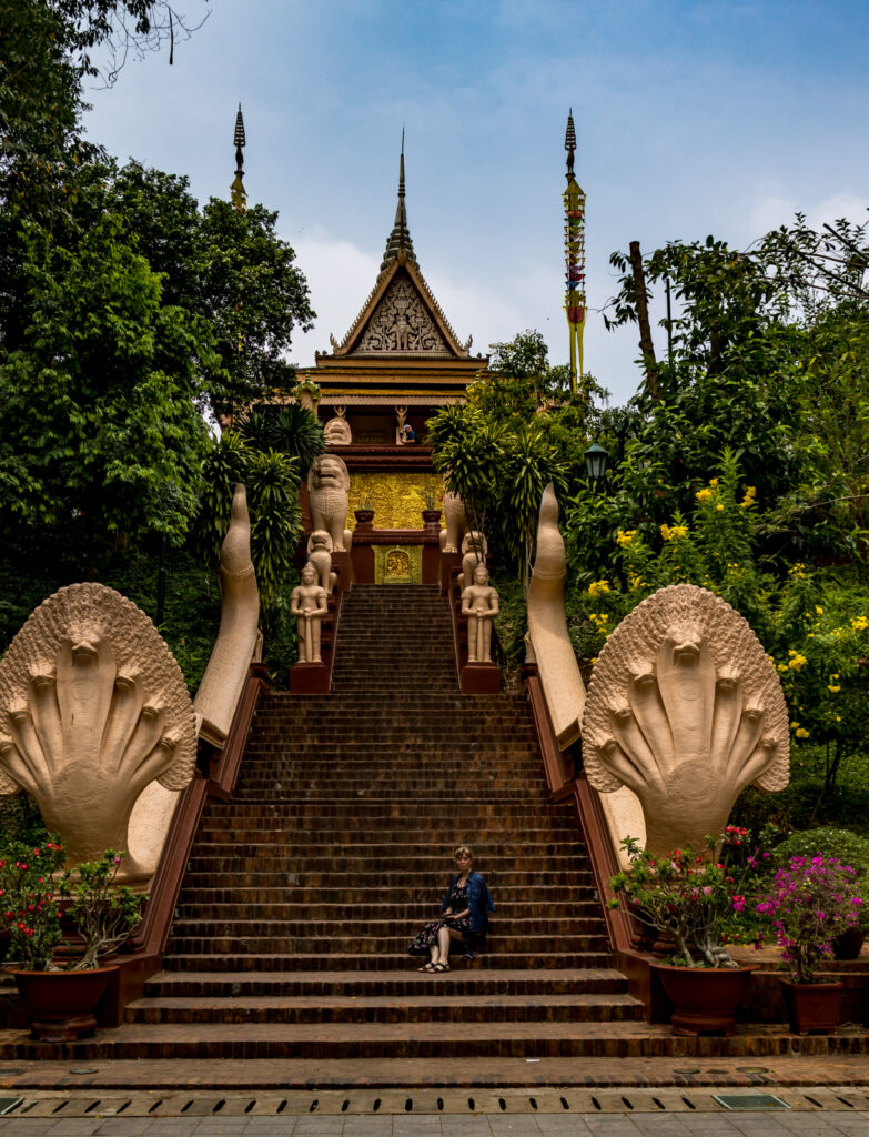 Alsbald erklommen wir die Stufen eines kleinen Hügels hinauf, um den Tempel Wat Phnom zu sehen, der als Geburtsort von Phnom Penh gilt.