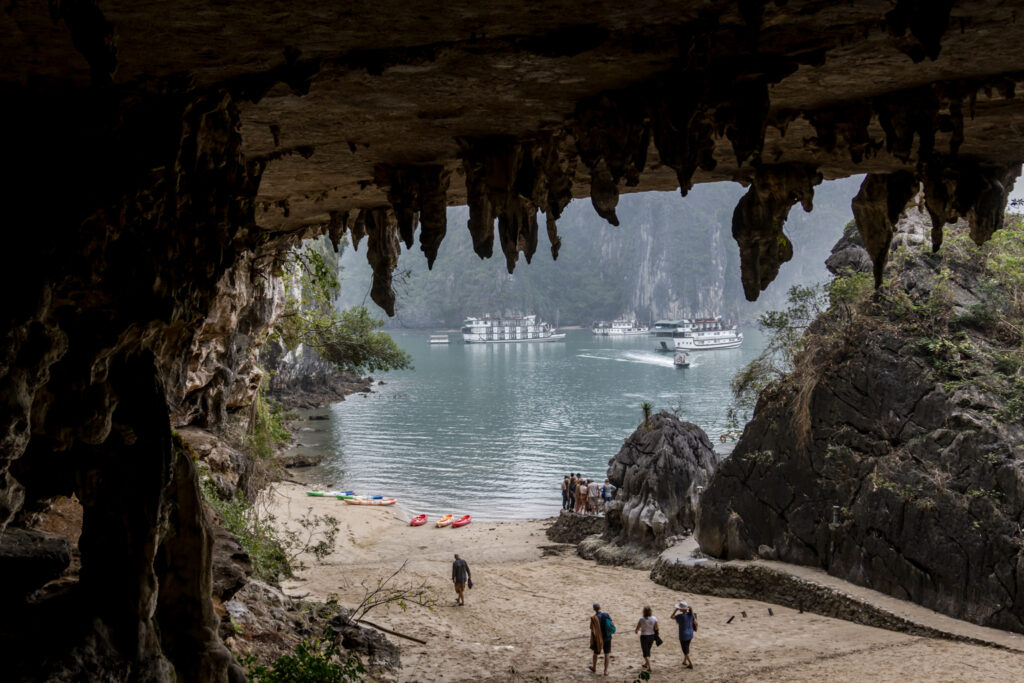 Zurück vom Kajak ging’s mit dem Beiboot an einen kleinen und vor allem sauberen Strand mit kleiner angrenzender Höhle. Romantisch.