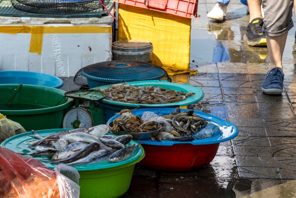 … mit Besuch des Marktes, der bei 32 Grad geruchstechnisch interessant bis herausfordernd war: