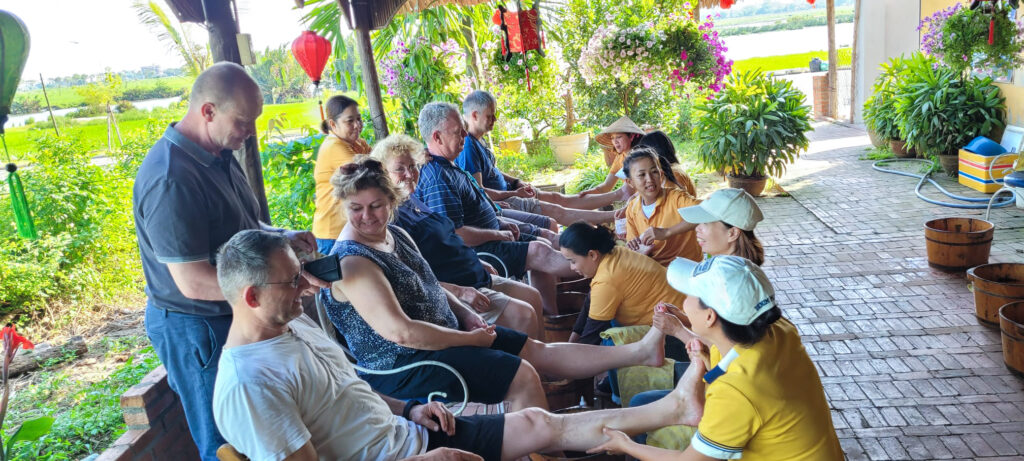 Nach so viel Arbeit stand noch eine Verwöhn- „Fuß-Wade-Nacken“-Massage an (glücklicherweise mit vorherigem Kräuterfussbad, ich hätte meine zwar hübsch lackierten, aber inzwischen ordentlich verschwitzten Füße niemandem zumuten wollen).